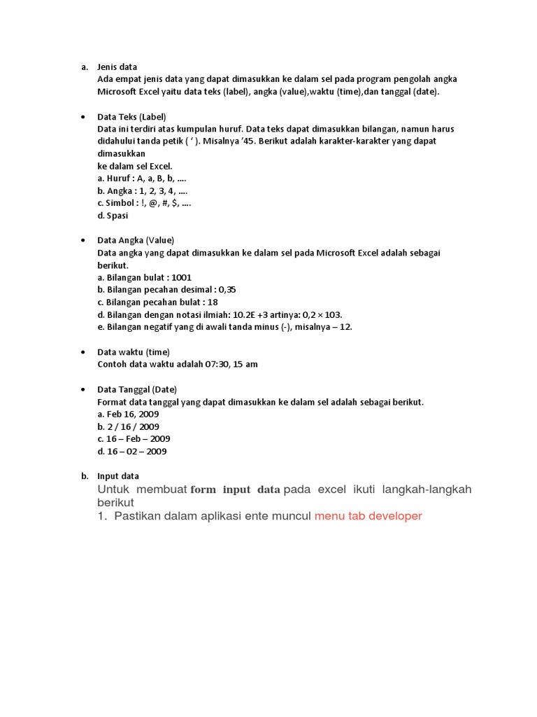 Ada empat jenis data yang dapat dimasukkan ke dalam sel pada program pengolah angka microsoft excel yaitu data teks (label), angka (value),waktu (time),dan tanggal (date). Jenis konstanta data konstanta adalah data riil yang diketikkan pada suatu sel. Di excel, kami selalu perlu membuat bagan yang membandingkan berbagai jenis data. Memahami jenis data pada excel ini sangat penting agar kita bisa merencanakan, menyusun serta mengolah data dengan tepat. Tipe data text, tipe data numerik, dan tipe data waktu. Pada dasarnya type data ini pasti sudah pernah kita temui bahkan mungkin sudah pernah kita gunakan. Memahami jenis data pada excel ini sangat penting agar kita bisa merencanakan menyusun serta mengolah data dengan tepat. Hal ini tentunya akan memudahkan kita dalam mengolah data tersebut. Pada artikel kali ini, kita akan coba melakukan tutorial bagaimana caranya membuat grafik dengan menggunakan dua jenis data. Pengertian dan fungsi tipe data vba excel. Data analysis sering digunakan bagi kita yang melakukan pengolahan data menggunakan office excel. Click the microsoft office button , lalu click excel options. Data label berfungsi untuk menampilkan data angka pada chart atau grafik.